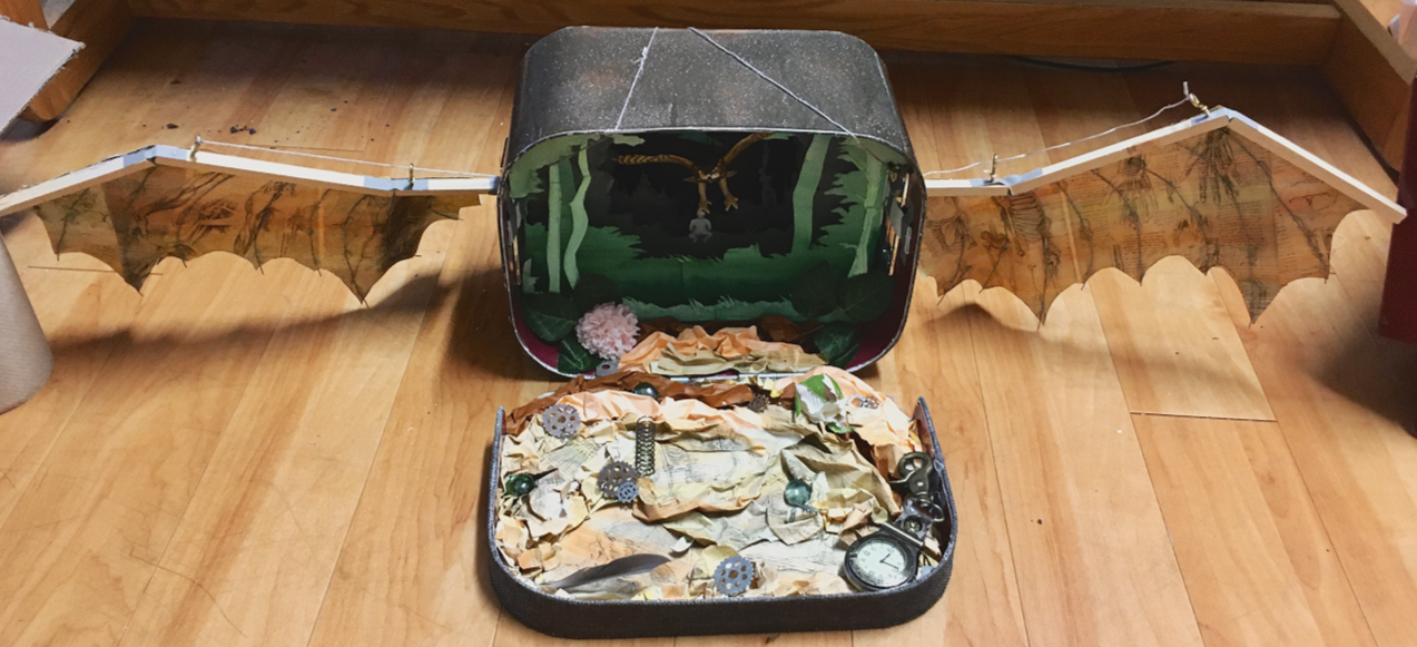 An exploration of flight based in Mary Zimmerman’s The Notebooks of Leonardo da Vinci, culminating in a kinetic art sculpture. The exploratory process included sketching, prototyping, and a thematic, found-object sculpture inspired by Joseph Cornell.