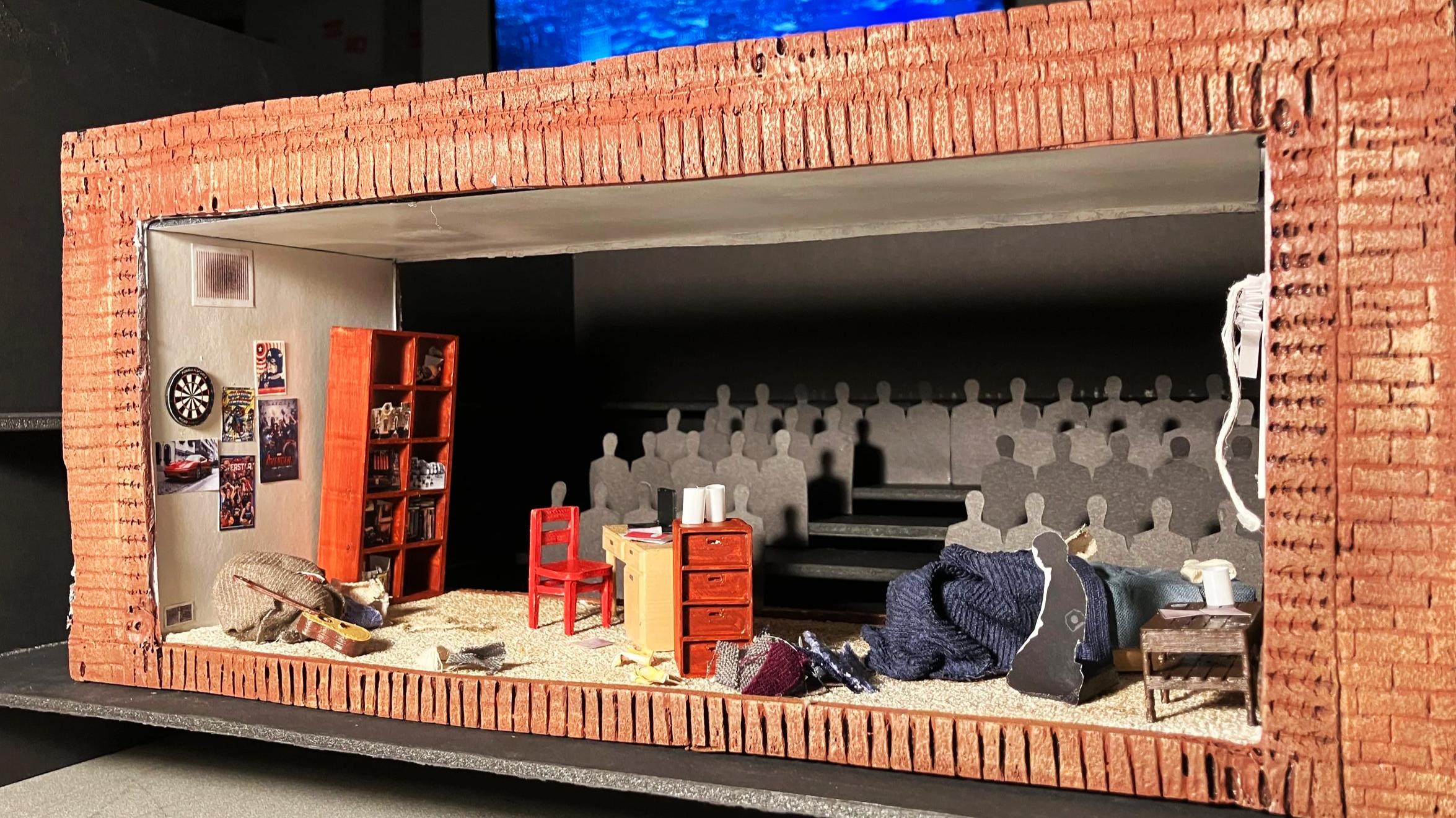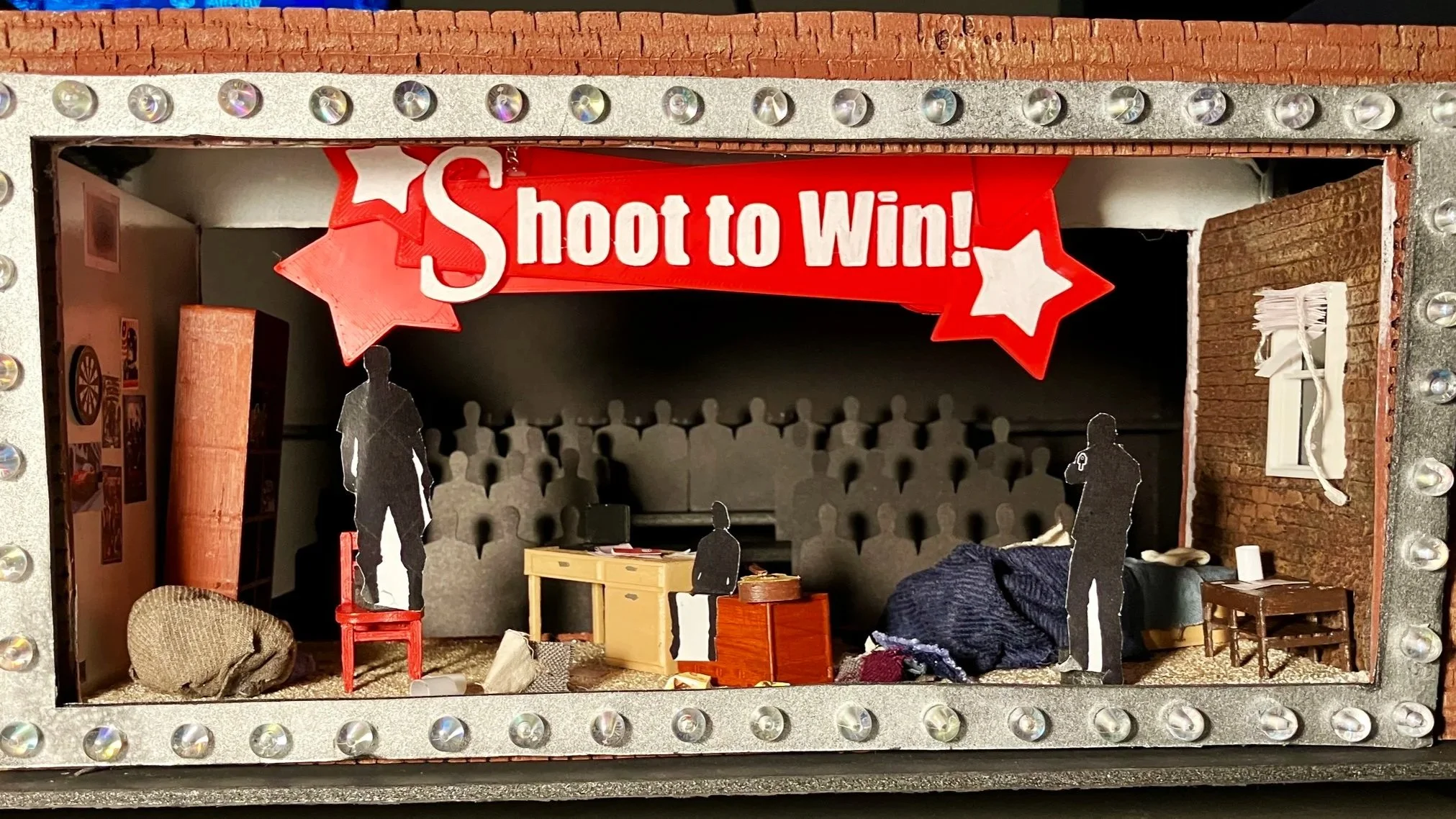 My exploration of Sondheim’s Assassins is set in the present day, in a young man’s cramped and incredibly ordinary apartment, which gets overwhelmed by the world of carnival midway. As the mythological figures from our country’s history share their plights and fantasies of violent grandeur, we are encouraged to ask who is next after Lee Harvey Oswald? Who bares the burden of carrying on their legacy, and why is he one of us?